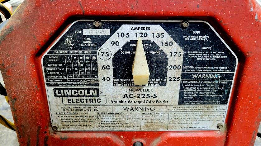 Key: 8502#0101 Manufacturer: LINCOLN Model: AC225 Sale Price: $150.00 Comments: